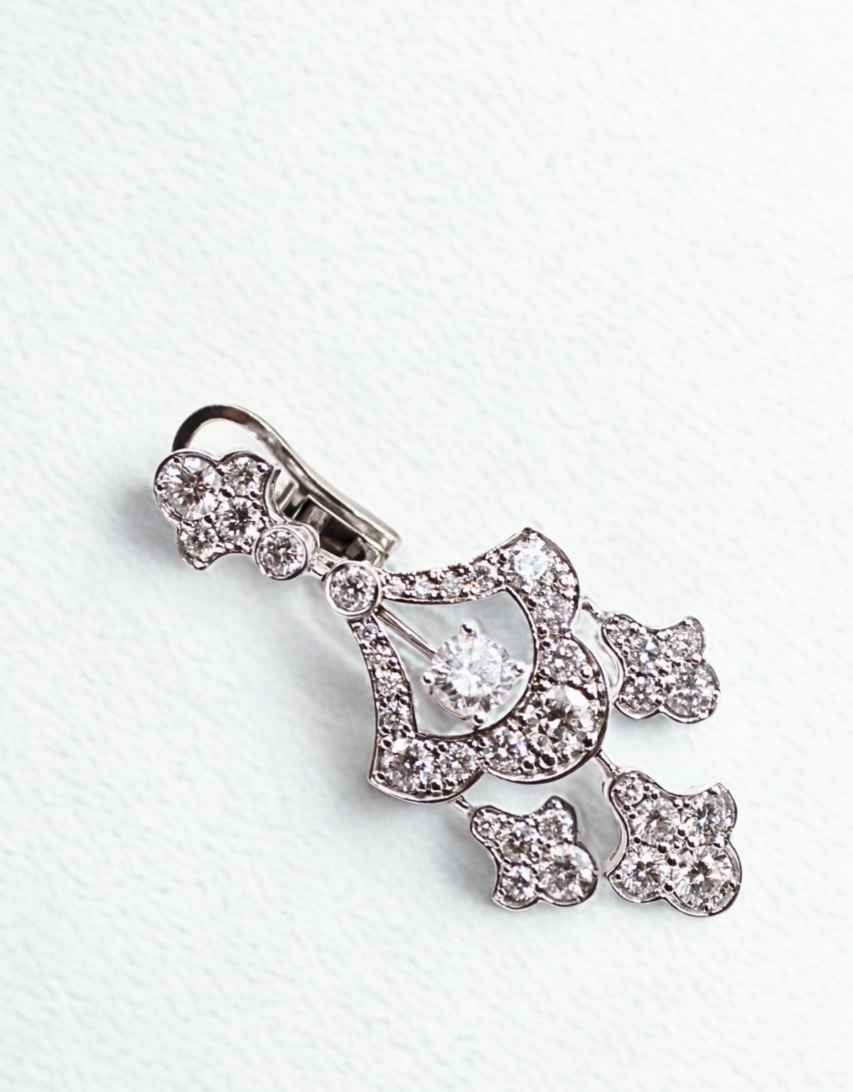 Ağ qızıldan və brilyantdan hazırlanmış sırğalar, Graff brendinin dizaynına bənzəyən məhsul.