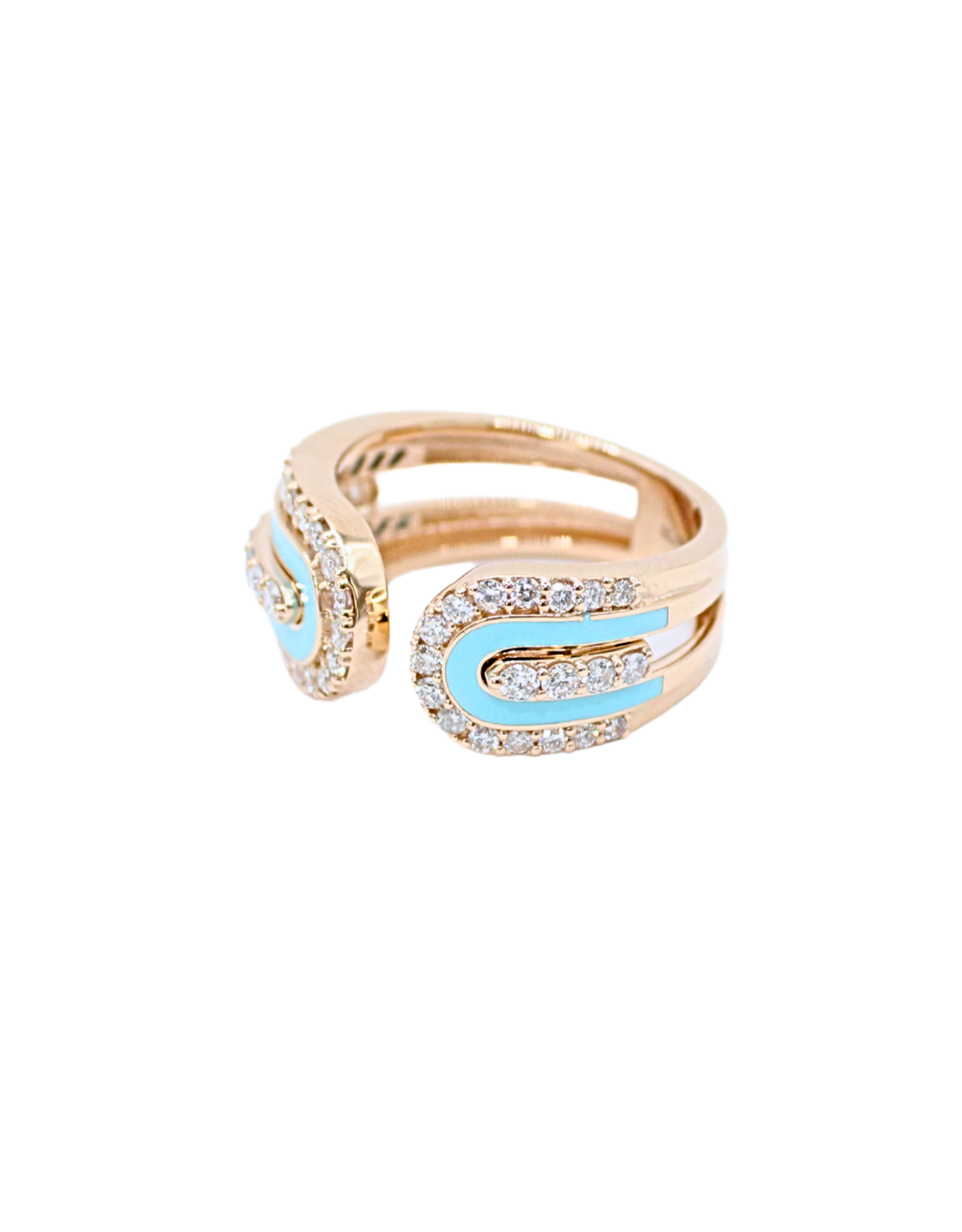 Bir süni mavi topaz və brilyantlarla olan ağ qızıldan üzük.