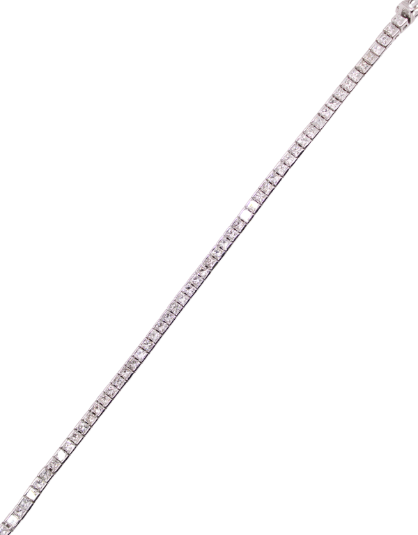 Brilyantlar və iki qırmızı baqet kəsimli süni daşlarla ağ qızıldan sırğalar.