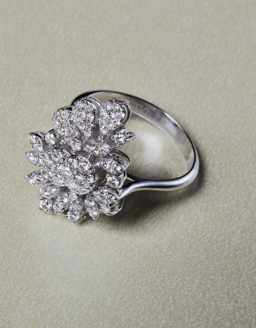 Кольцо из белого золота и сверкающих бриллиантов.