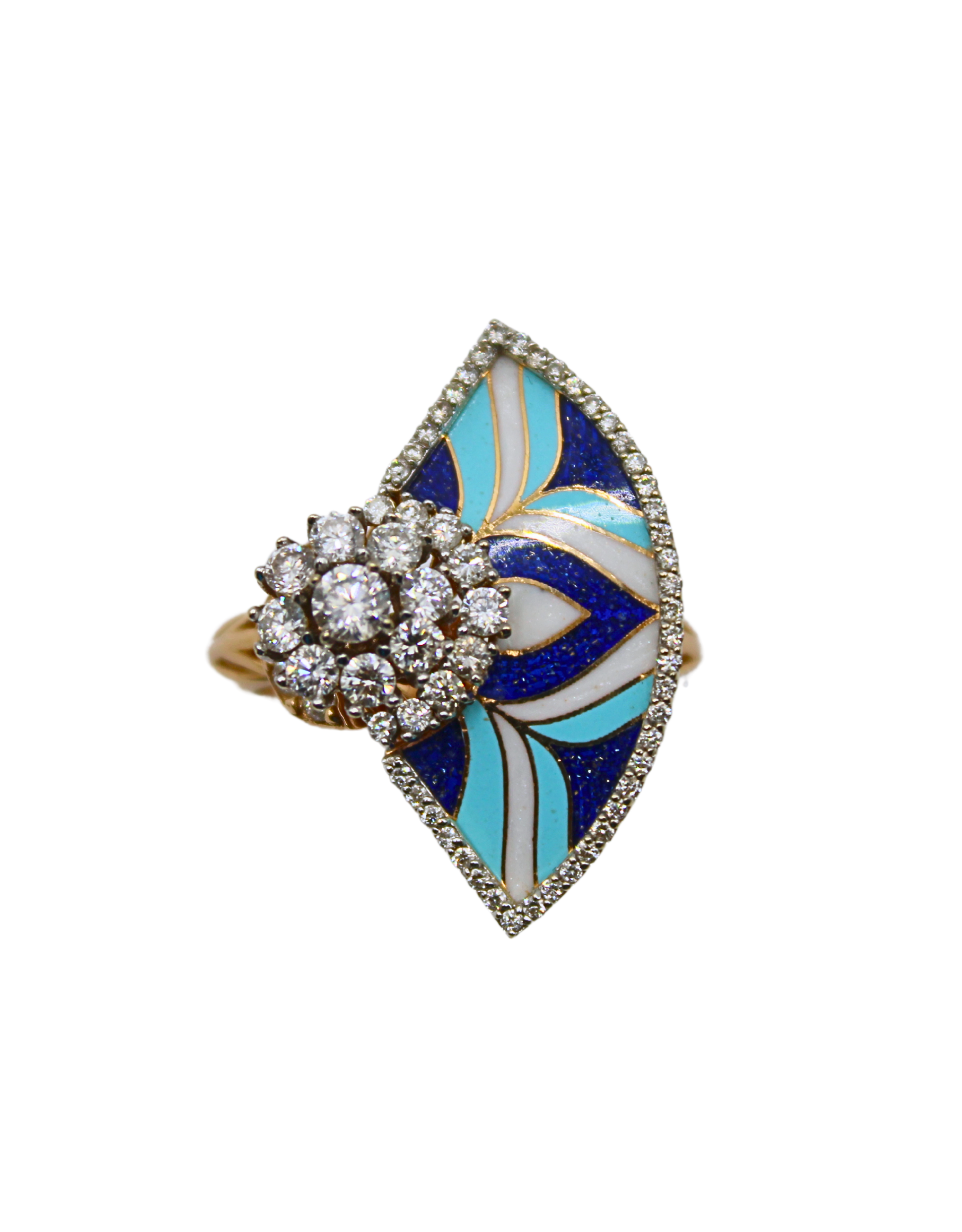 Цепочка из розового золота, украшенная голубой эмалью и бриллиантами в форме глаза-оберега.