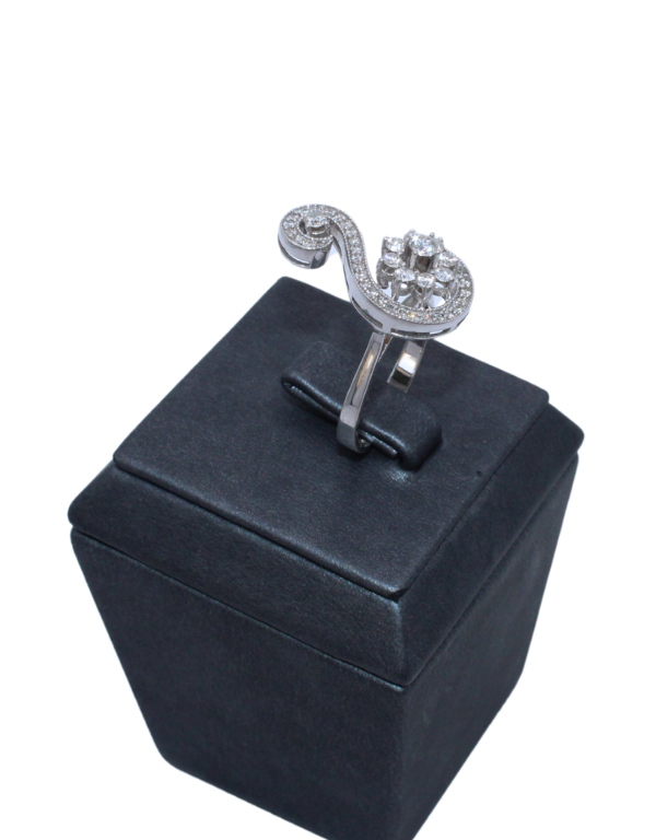 Кольцо из белого золота, украшенное бриллиантами и напоминающее форму лебедя.