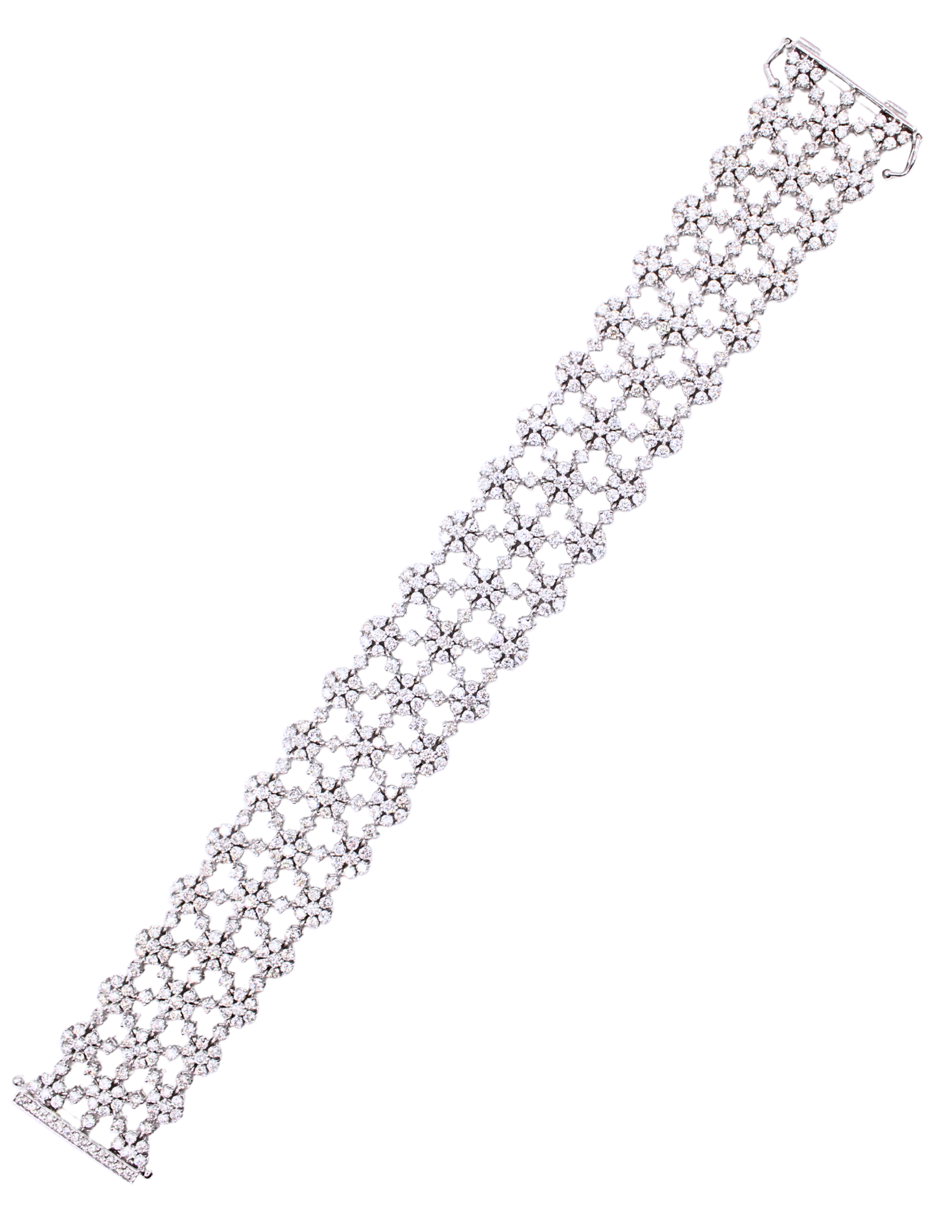 Серьги из белого золота и бриллиантов в форме трех цветков.