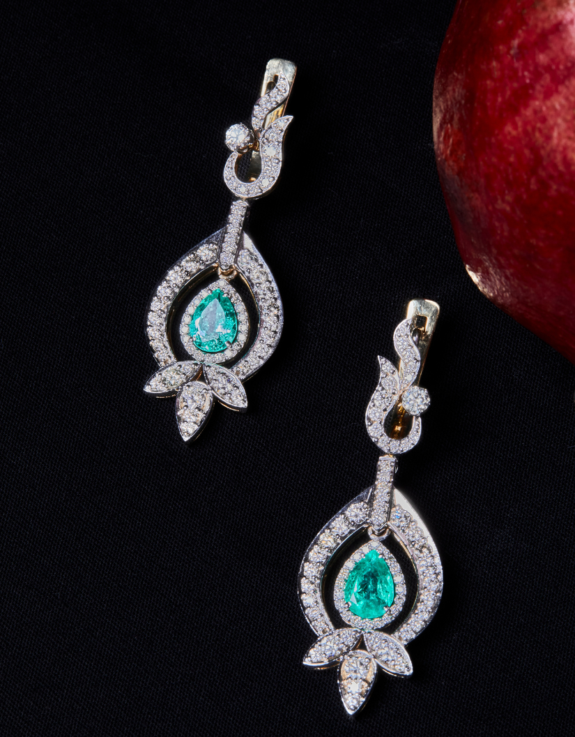 Золотые винтажные серьги в сочетании с белым золотом, с изумрудами и бриллиантами.